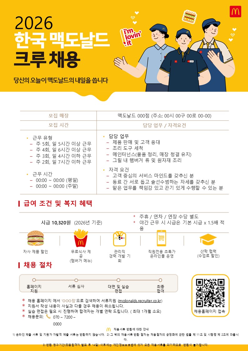 맥도날드 순천덕암DT점에서 메인터넌스/크루를 모집합니다.