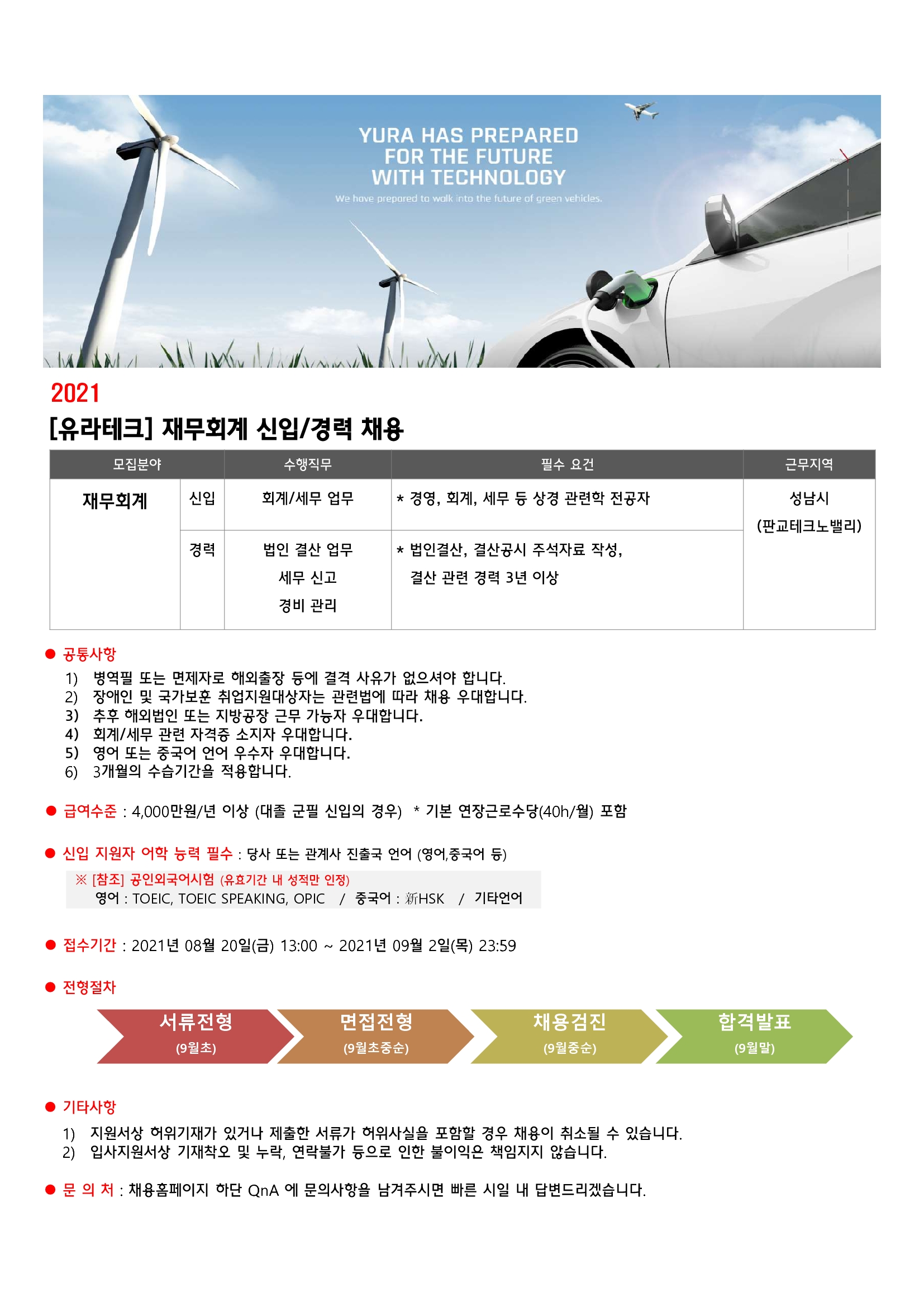 2021 유라테크 재무회계 신입/경력 채용공고(성남)