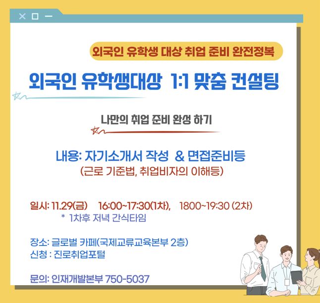 [인재개발본부] 외국인 유학생 대상 맞춤형 취업컨설팅 참여자 모집