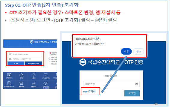 셀프 OTP 초기화가 가능하도록 다음과 같이 개선하였으니 서비스 이용에 참고하시기 바랍니다.