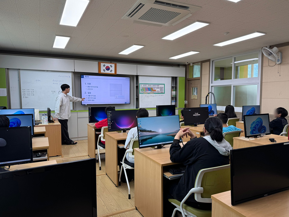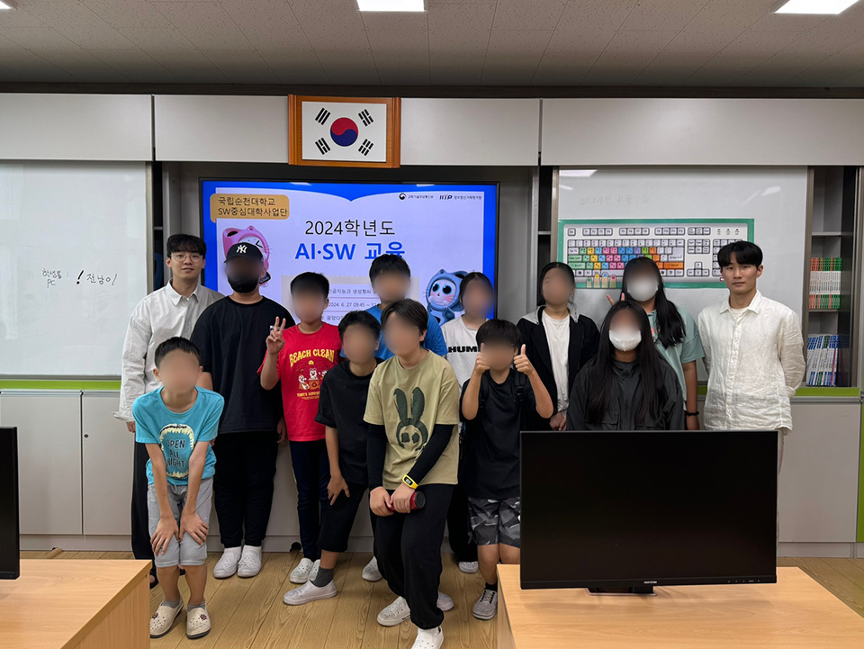 국립순천대학교 SW중심대학사업단에서는 SW교육 및 체험 프로그램을 통해 미래 SW인재 발굴 및 SW가치확산을 도모하고 SW 전공분야에 대한 이해와 관심을 키울 수 있는 기회 제공을 목적으로 AI·SW 가치확산 교육을 진행하고 있다. 2024. 6. 27.(목) 9:45 ~ 12:00, 광양다압초등학교 및 구례토지초등학교 6학년 재학생 11명을 대상으로 "2024 AI·SW 가치확산 교육 프로그램"을 운영하였다. "인공지능 및 생성형 AI 활용하기"라는 주제로 생활속의 인공지능, 사진 인식, 사물 인식 실습, 포즈 인식 실습, 그림 그리기 실습 등 이론과 실습을 조화롭게 구성한 교육을 진행했다.